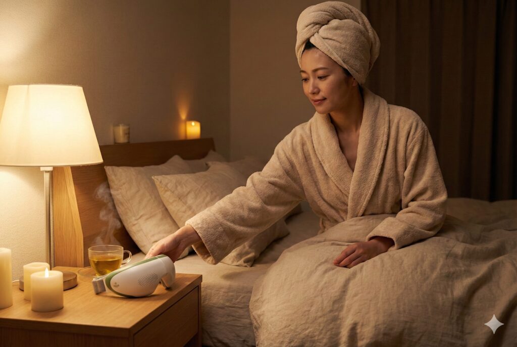 特に日中パソコンやスマホで酷使した目は、緊張が抜けにくいもの。入浴後のリラックスした状態で使うことで、目の奥の重さが和らぎ、自然と眠気を誘われる人も多いです。寝る前の習慣として取り入れることで、ケアを無理なく継続しやすくなります。